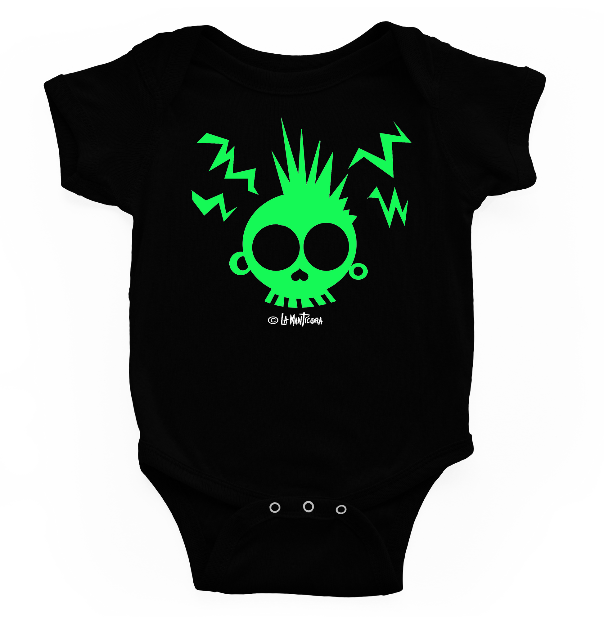 Body de bebé con manga corta de punto liso. Modelo Skull angry Green