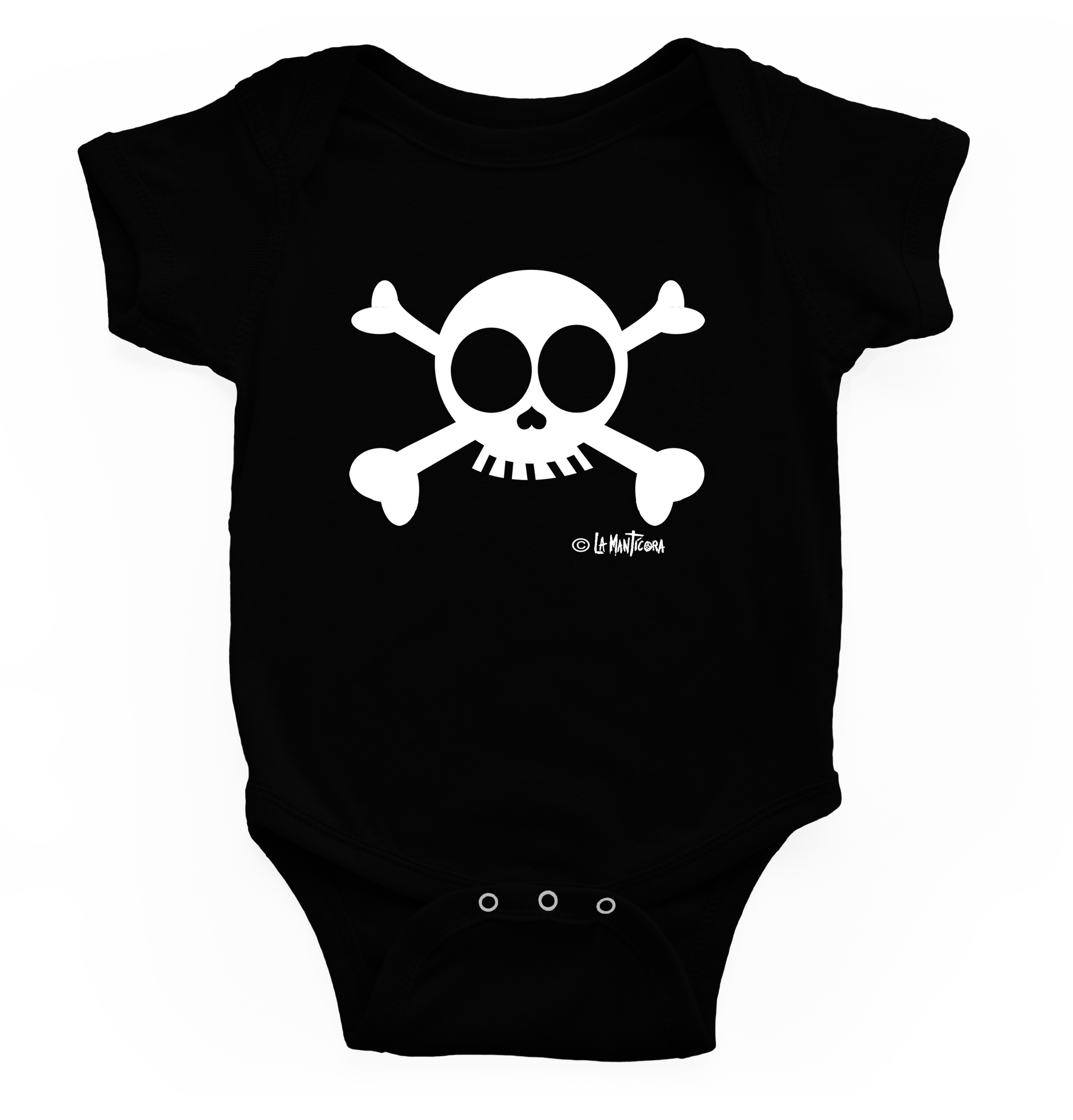 Body de bebé con manga corta de punto liso. Modelo Skull White