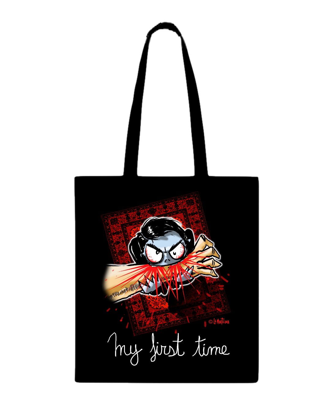 Bolsa 100 % algodon con nuestro diseño My First Time. Personaje del comic Inferna Kids. Comic que pronto podréis disfrutar!