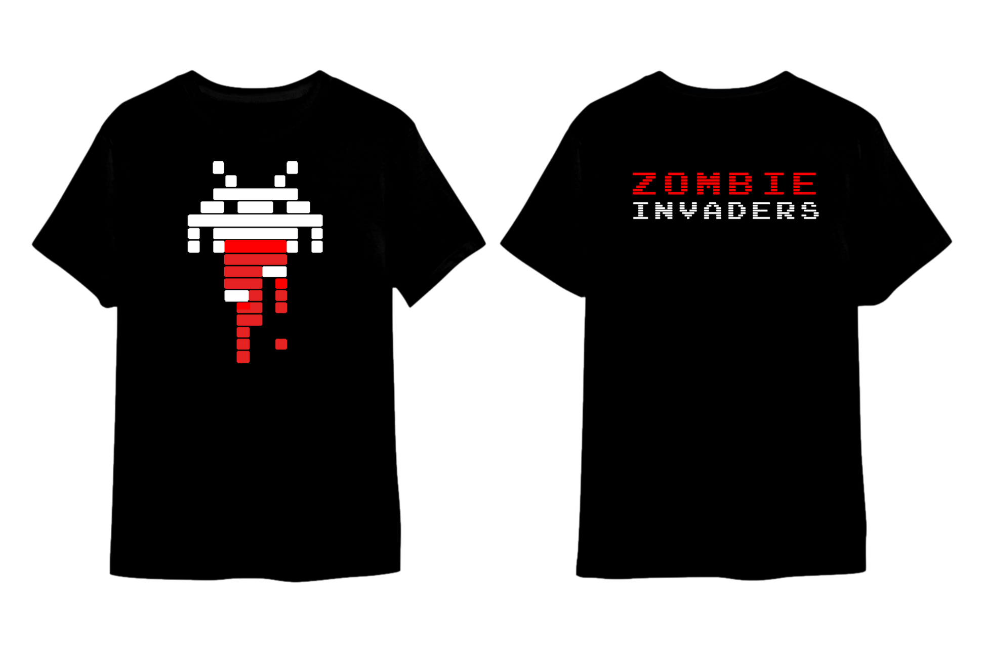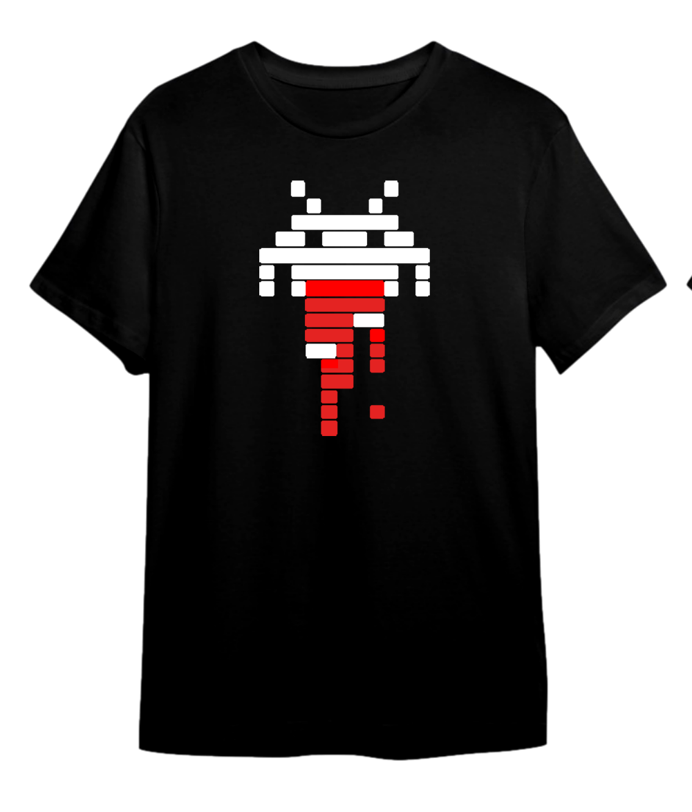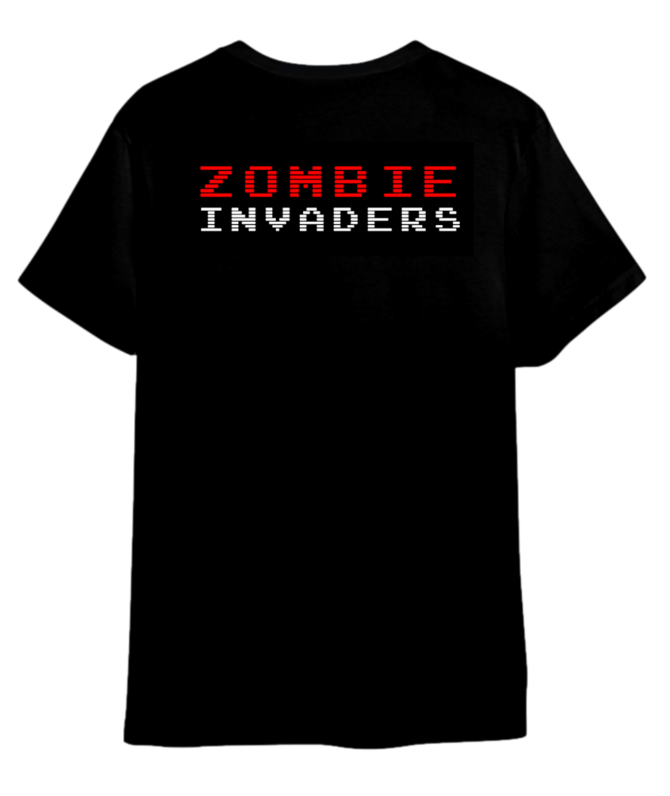 Camiseta Manga Corta 100 % algodón en color negro. Diseño Invaders. Vampiros espaciales y chupasangres virtuales. No hay defensa posible.
