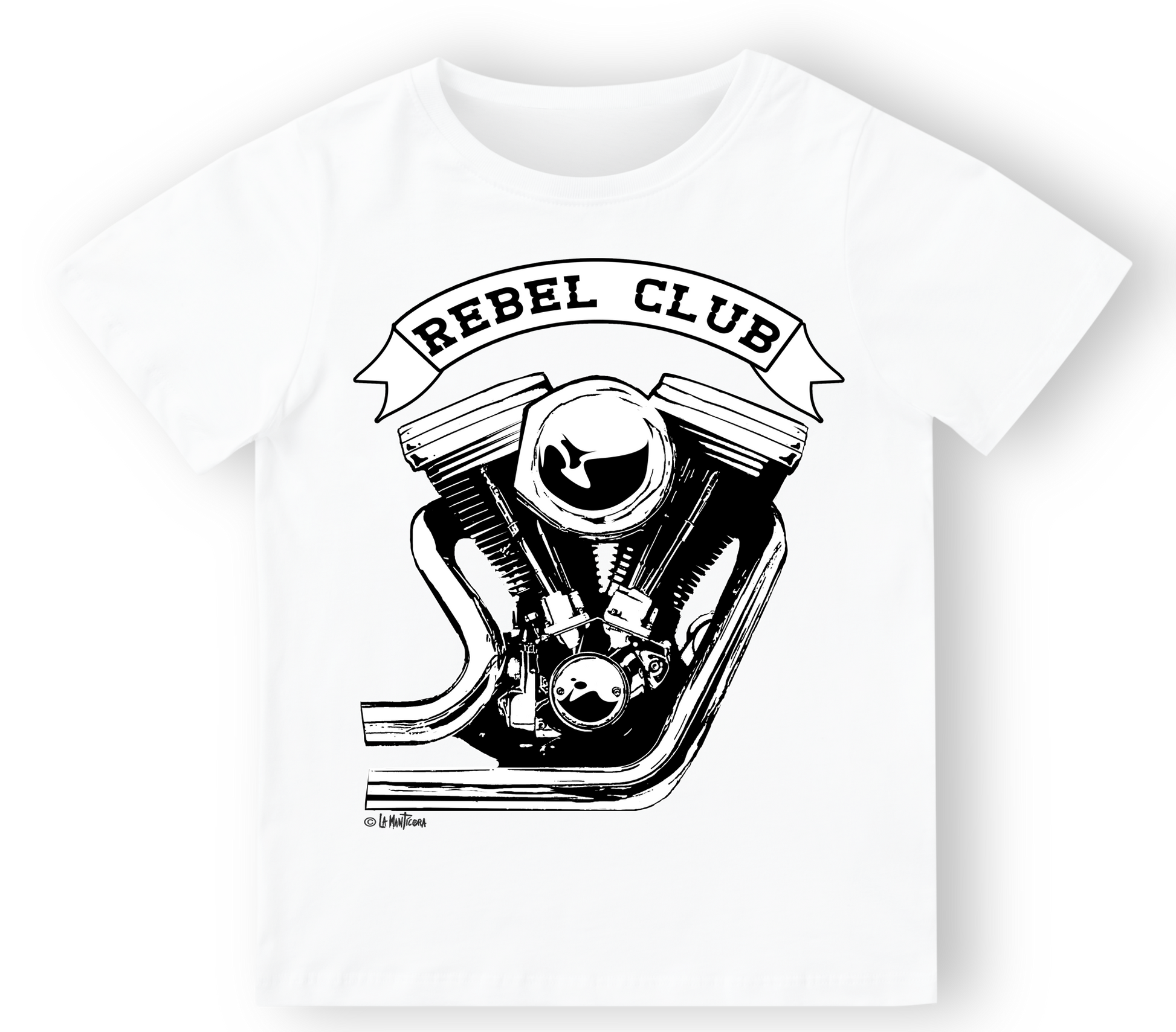 Camiseta Manga Corta 100 % algodón en color blanco. Modelo Rebel en camiseta blanca.