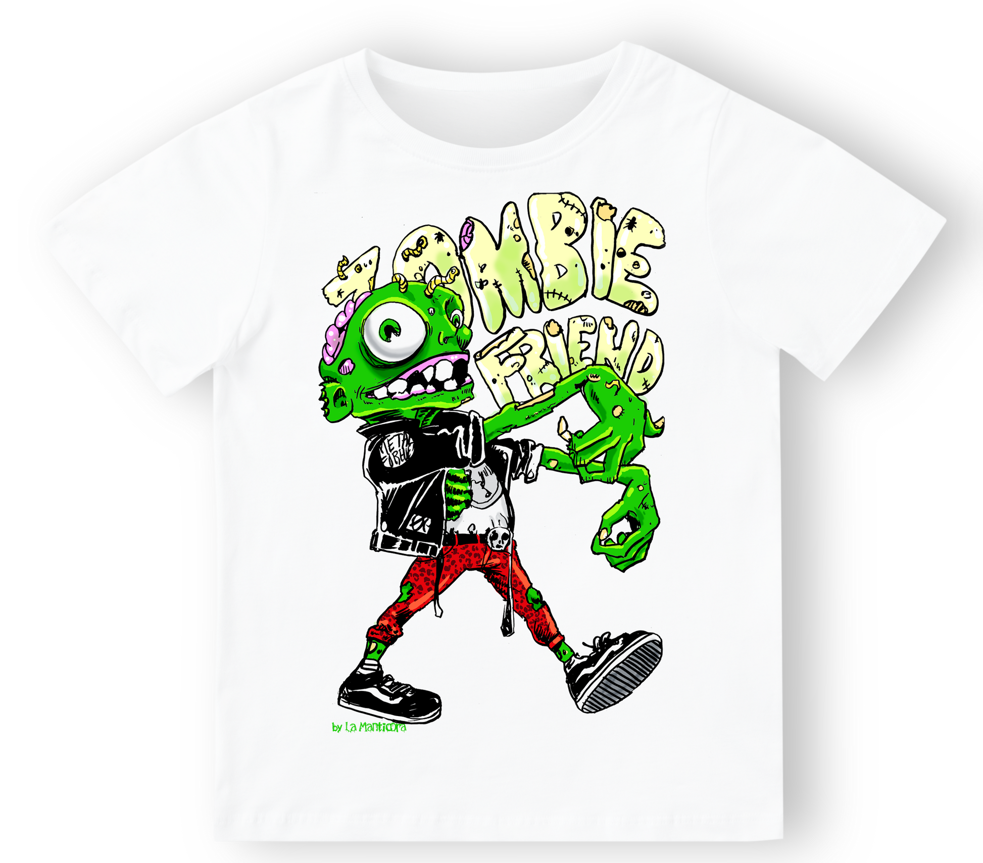 Camiseta Manga Corta 100 % algodón en color blanco. Modelo Zombie Friends en camiseta blanca.