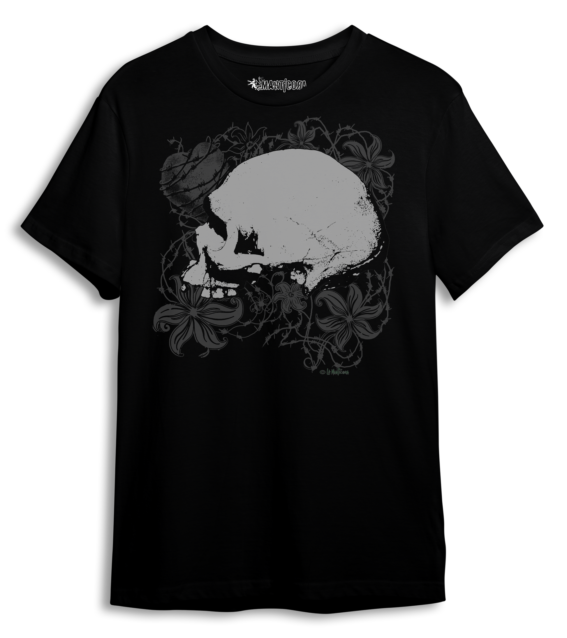 Camiseta Manga Corta 100 % algodón en color negro. Diseño Skulls of love.