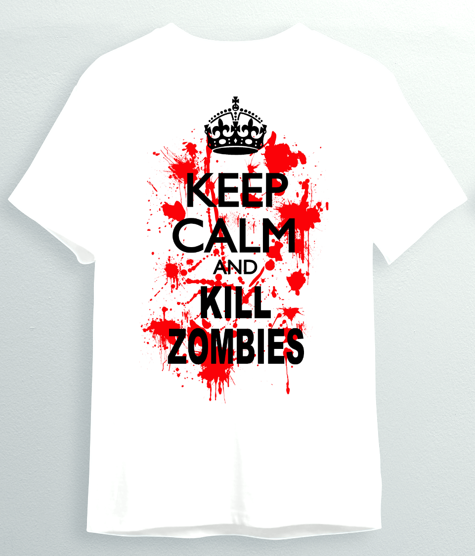Camiseta Manga Corta 100 % algodón en color blanco. Diseño Zombies Keep the calm. Es importante que no pierdas la calma en un ataque Zombie sobretodo si a tu alrededor solo hay pánico y desesperación. Tienes una oportunidad manteniendo la calma, o no.