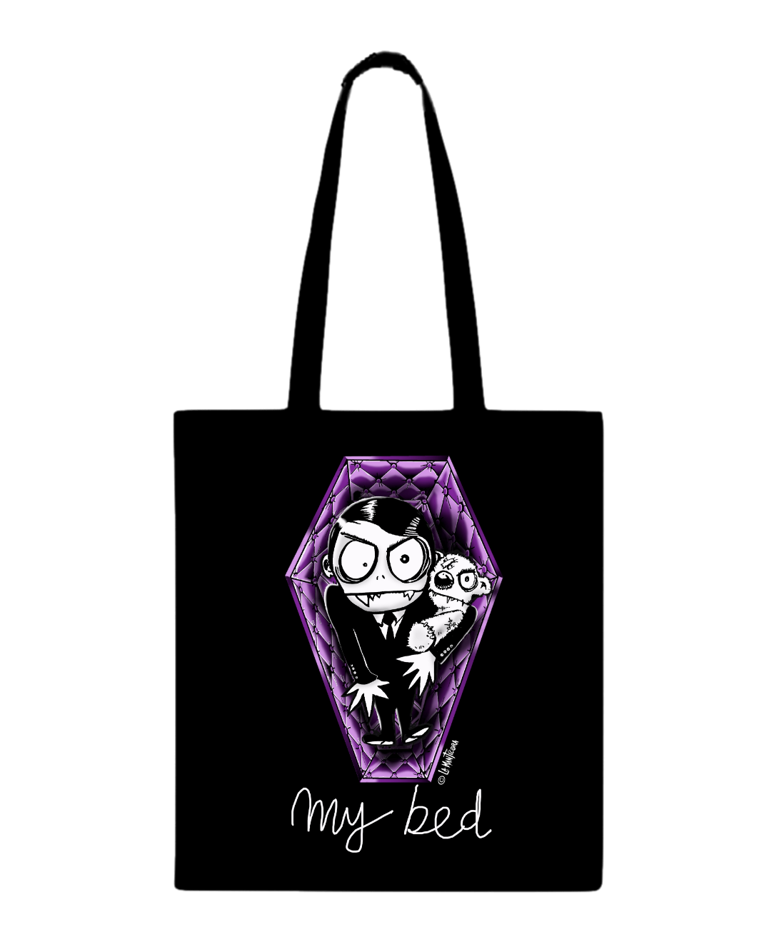 Bolsa 100 % algodon con nuestro diseño My Bed. Personaje del comic Inferna Kids. Comic que pronto podréis disfrutar!