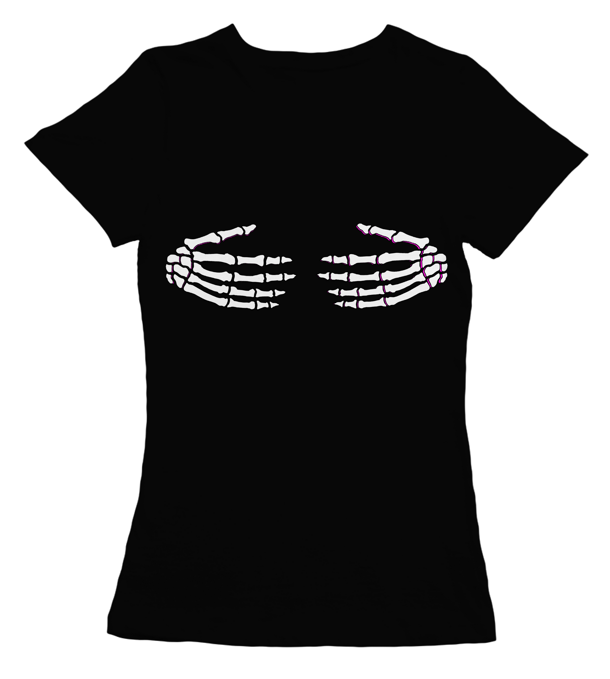 Camiseta Manga Corta 100 % algodón entallada en color negro con nuestro diseño abrazo esqueleto white en camiseta negra