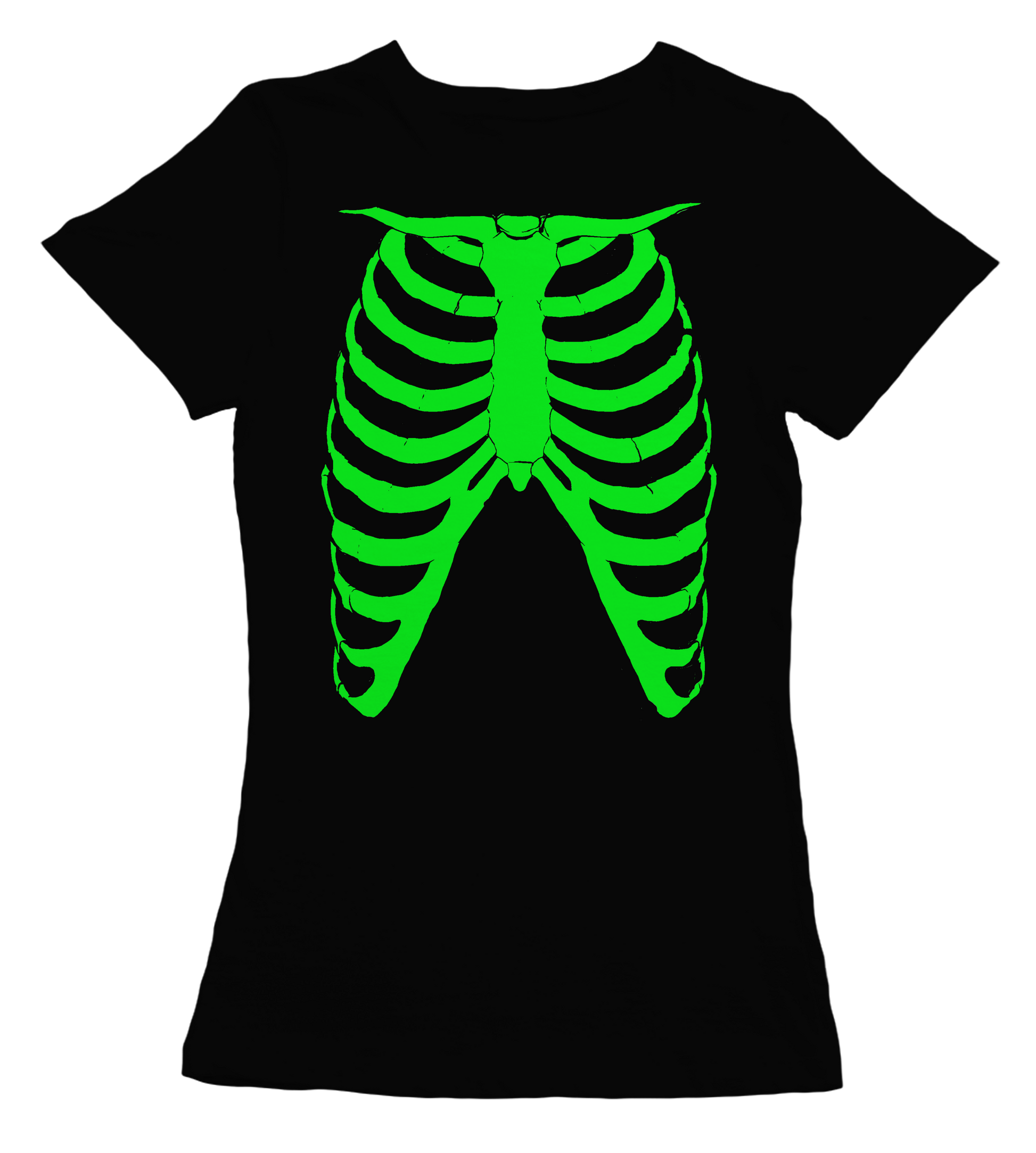 Camiseta Manga Corta 100 % algodón entallada en color negro con nuestro diseño esqueleto verde en camiseta negra