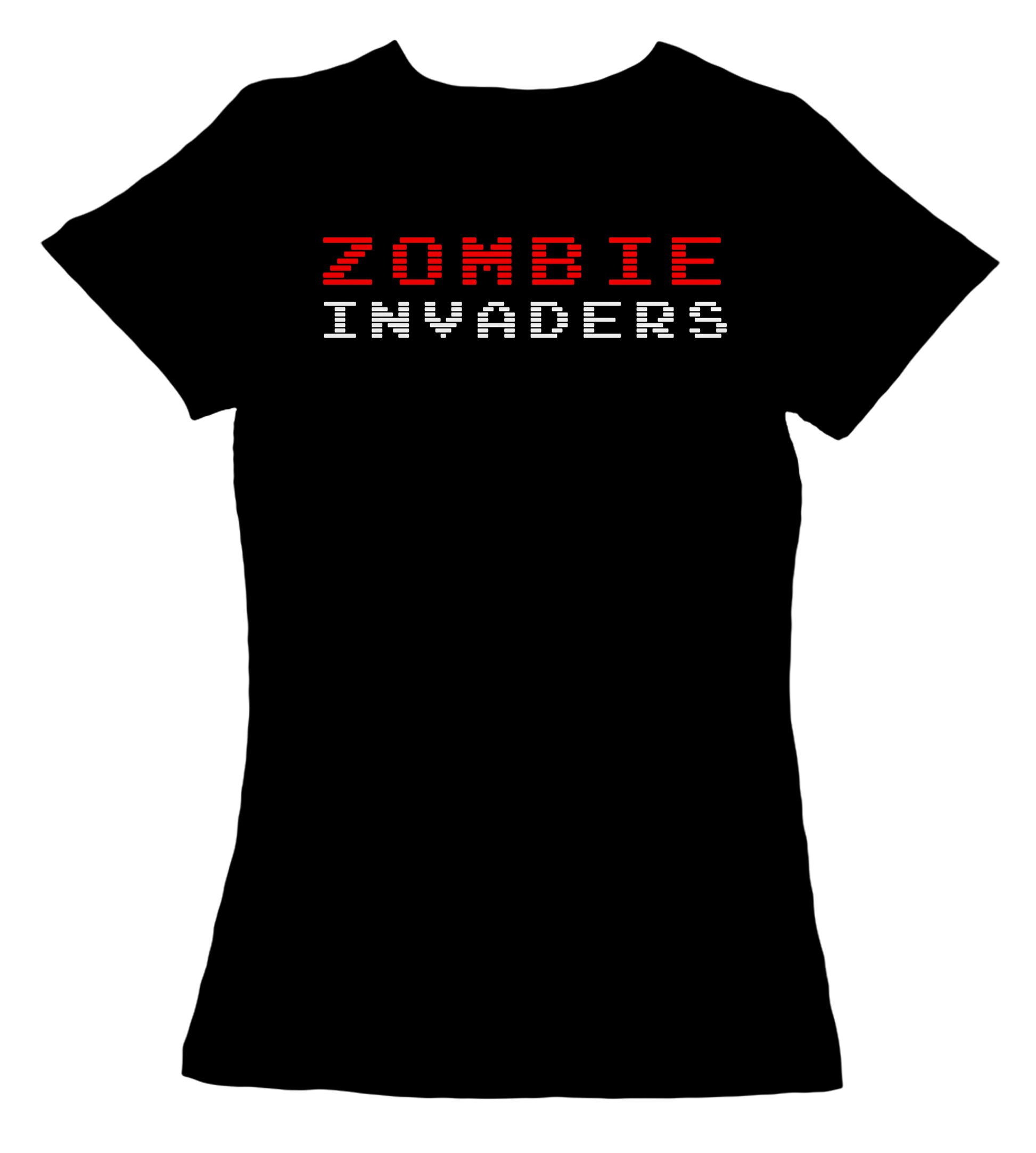 Camiseta Manga Corta entallada 100 % algodón en color negro. . Diseño Zombie Invaders. Vampiros espaciales y chupasangres virtuales. No hay defensa posible.