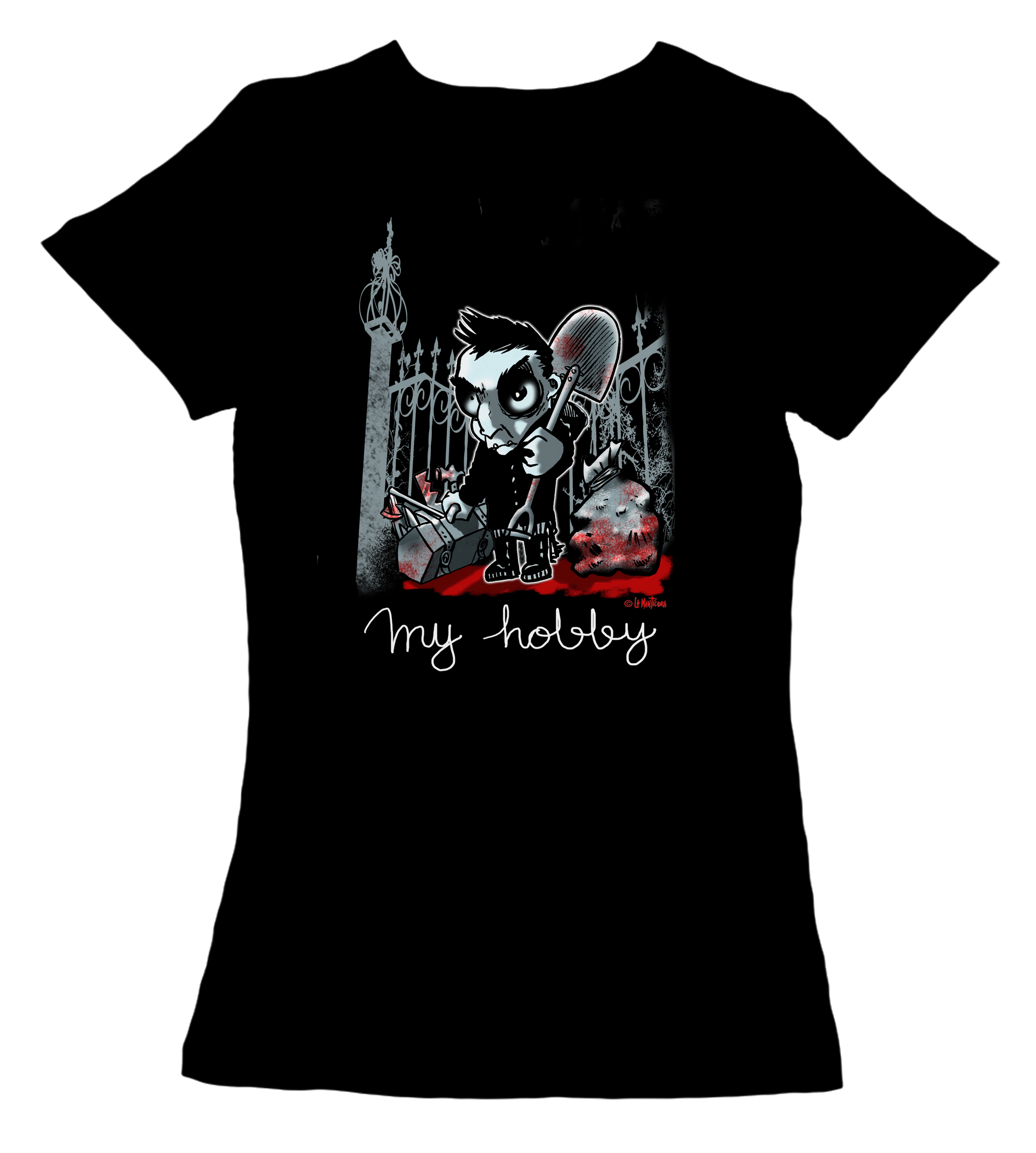 Camiseta Manga Corta 100 % algodón entallada en color negro. Diseño My Hobby. Personaje del comic Infernal Kids. Comic que pronto podréis disfrutar!