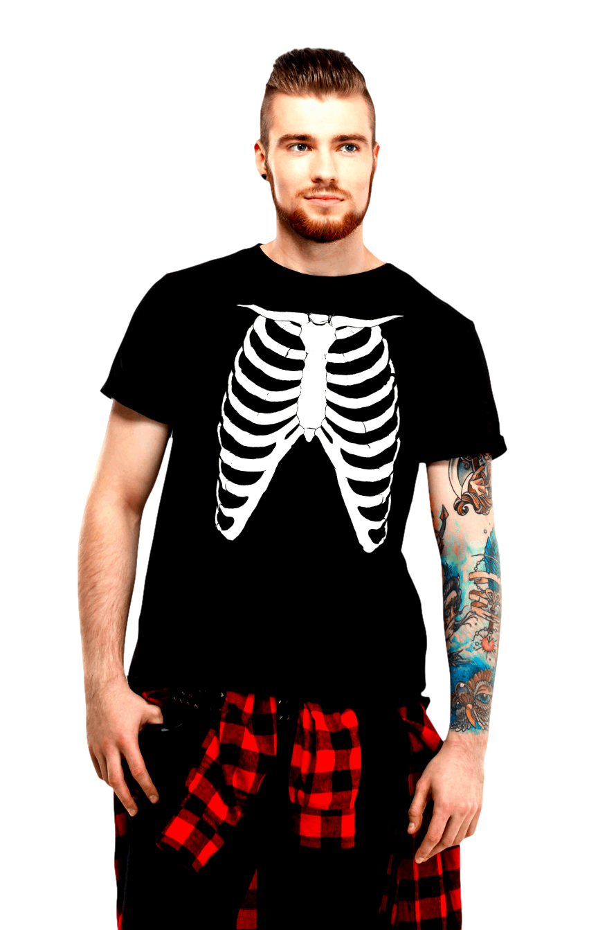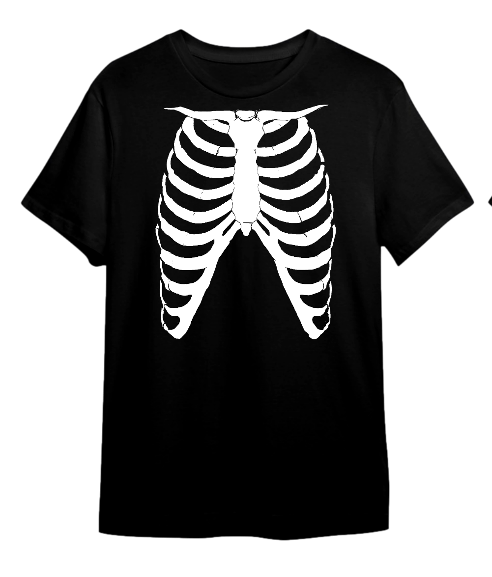 Camiseta Manga Corta 100 % algodón en color negro. Diseño Costillar en blanco sobre camiseta negra