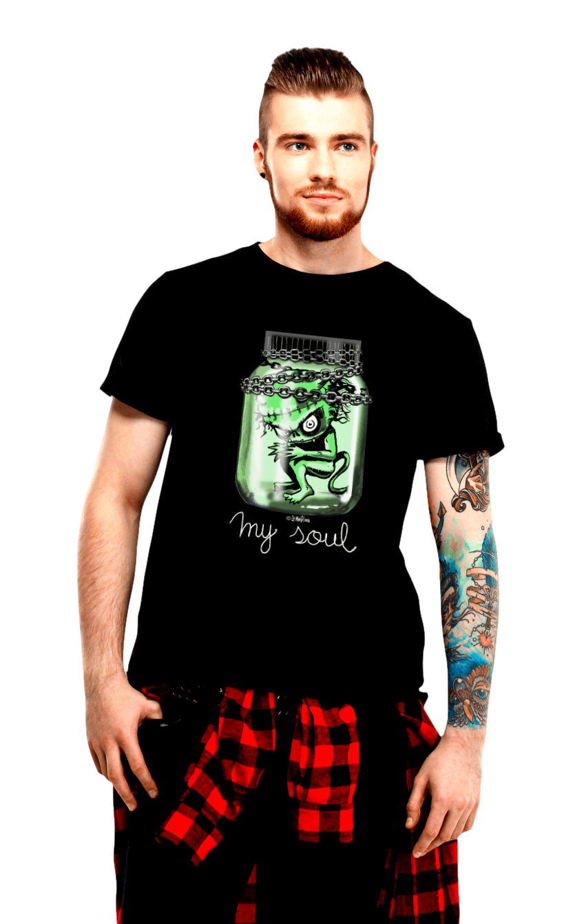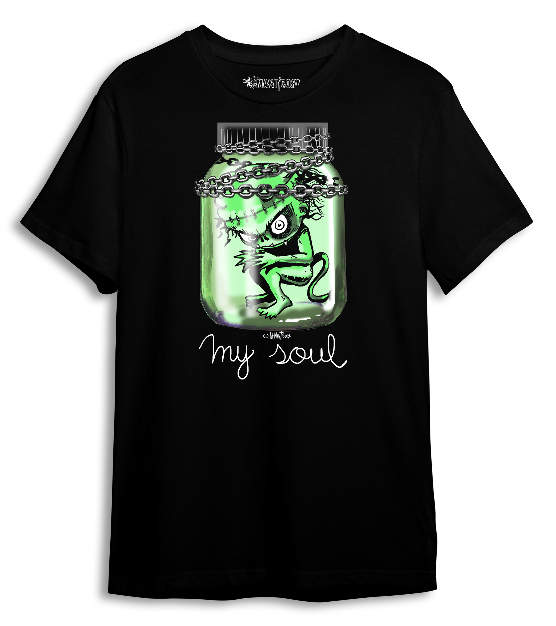 Camiseta Manga Corta 100 % algodón en color negro. Diseño My Soul. Personaje del comic Inferna Kids. Comic que pronto podréis disfrutar!