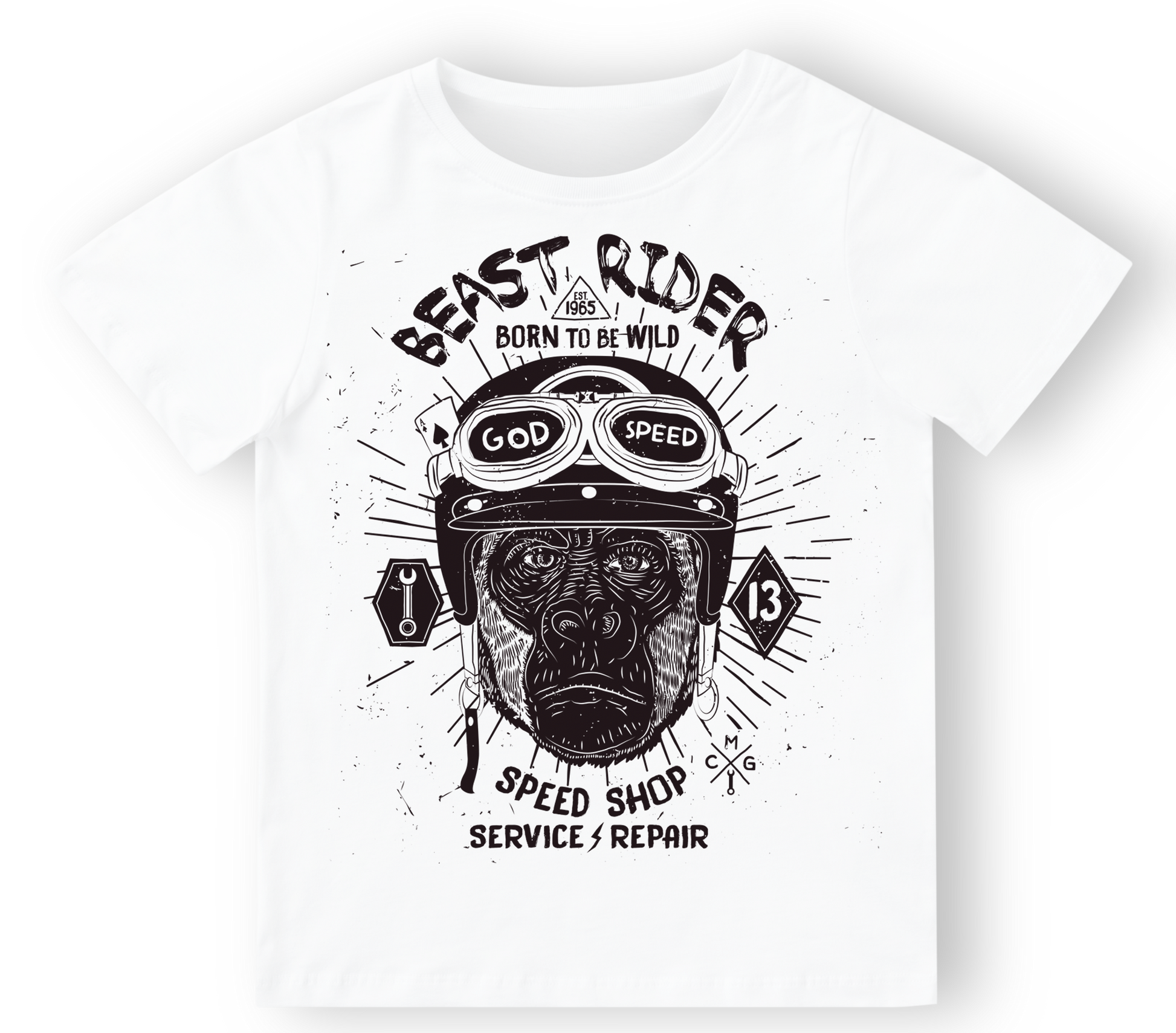 Camiseta Manga corta 100 % algodón en color blanco. Modelo Beast ryder en camiseta blanca.