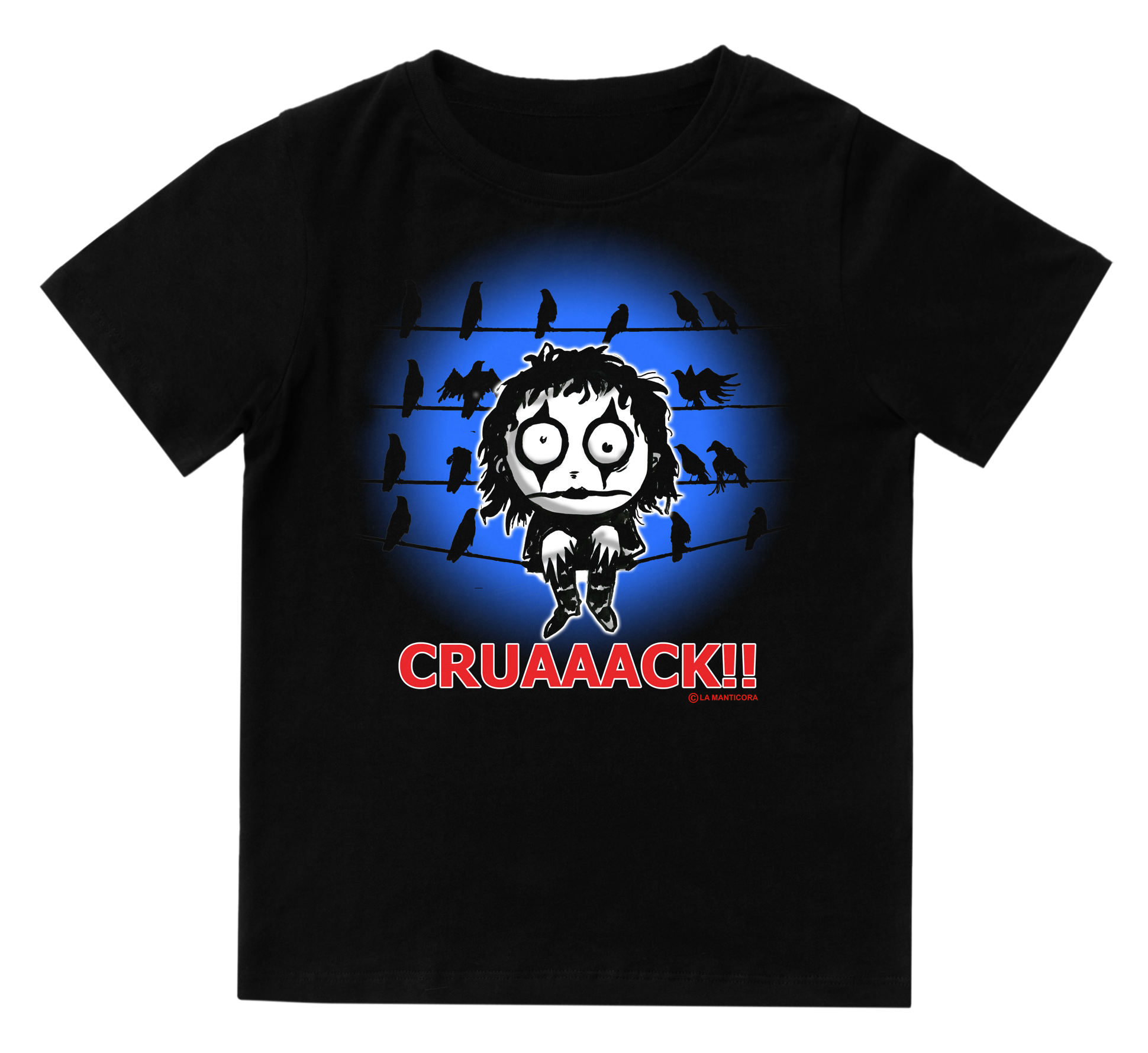 Camiseta Manga corta 100 % algodón en color negro. Modelo Cruaaack en camiseta negra.