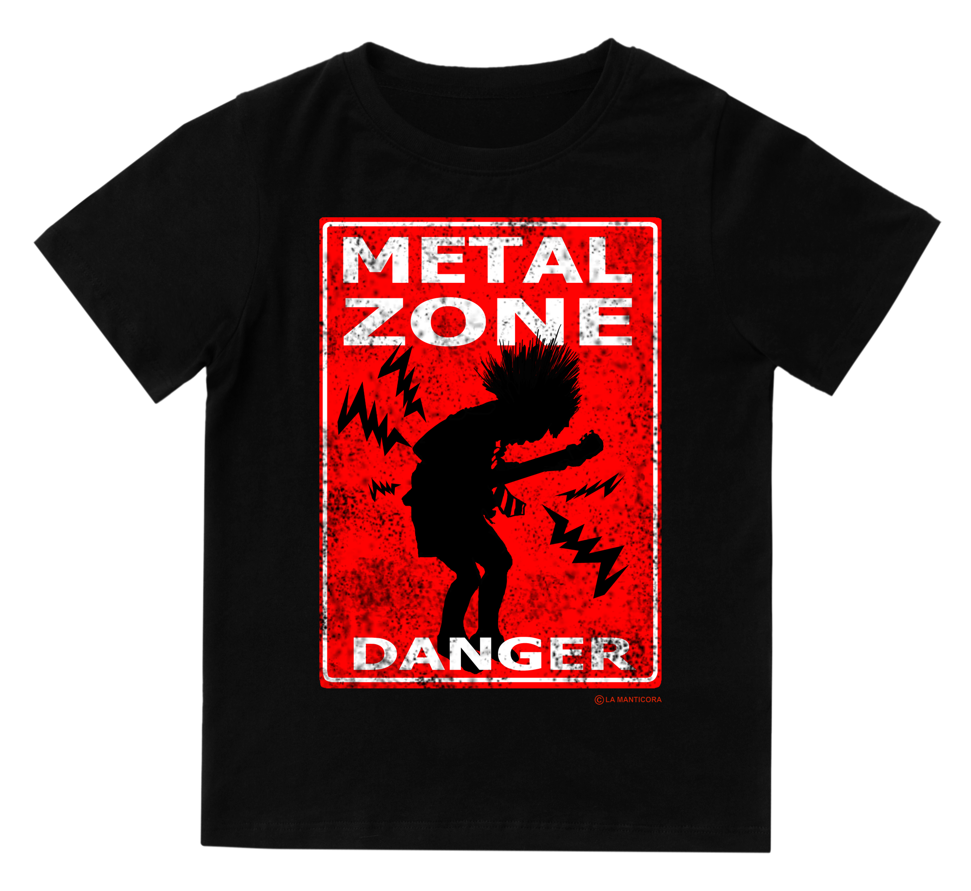 Camiseta Manga Corta 100 % algodón en color negro. Modelo Metal Zone en camiseta negra.