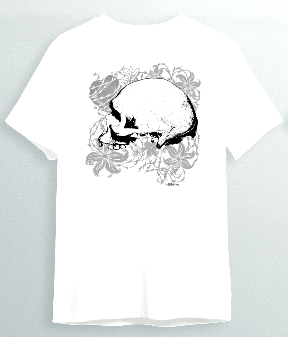 Camiseta Manga Corta 100 % algodón en color blanco. Diseño Skulls of love.