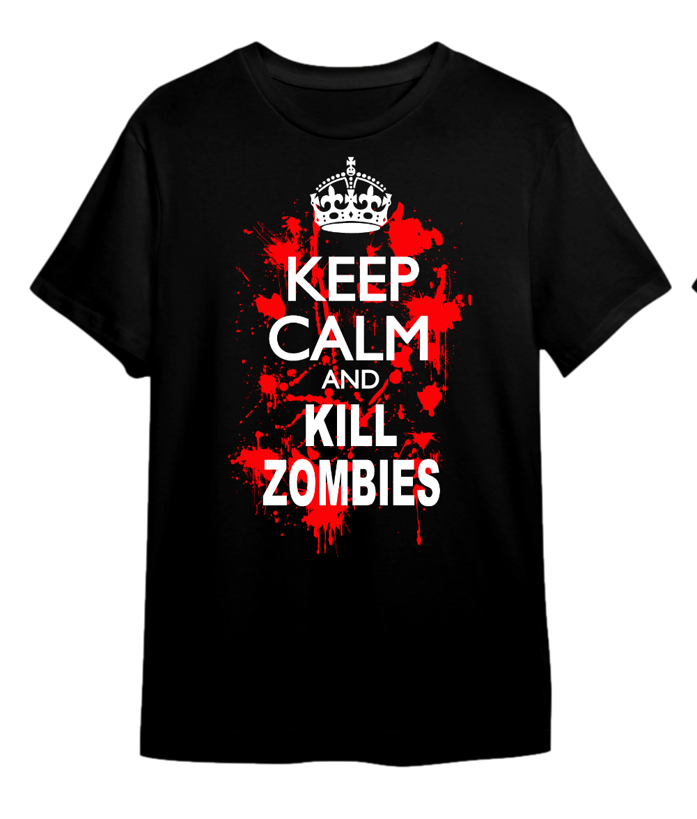 Camiseta Manga Corta 100 % algodón en color negro. Diseño Zombies Keep the calm. Es importante que no pierdas la calma en un ataque Zombie sobretodo si a tu alrededor solo hay pánico y desesperación. Tienes una oportunidad manteniendo la calma, o no.