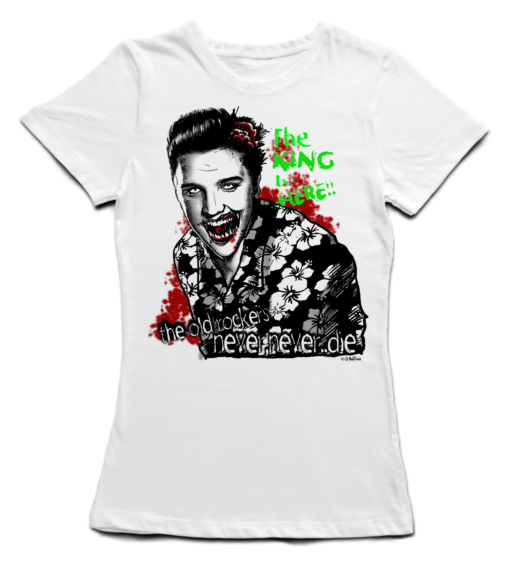 Camiseta Manga Corta entallada 100 % algodón en color blanco . Diseño The King.