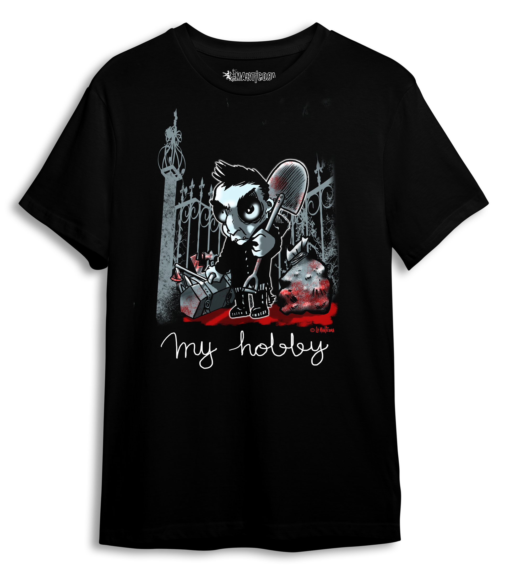 Camiseta Manga Corta 100 % algodón en color negro. Diseño My Hobby. Personaje del comic Inferna Kids. Comic que pronto podréis disfrutar!